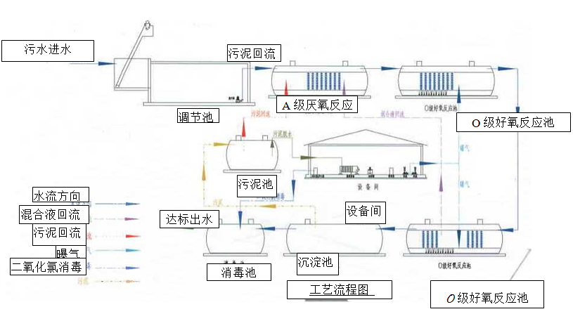 地埋式一體化生活污水處理設(shè)備工藝流程圖