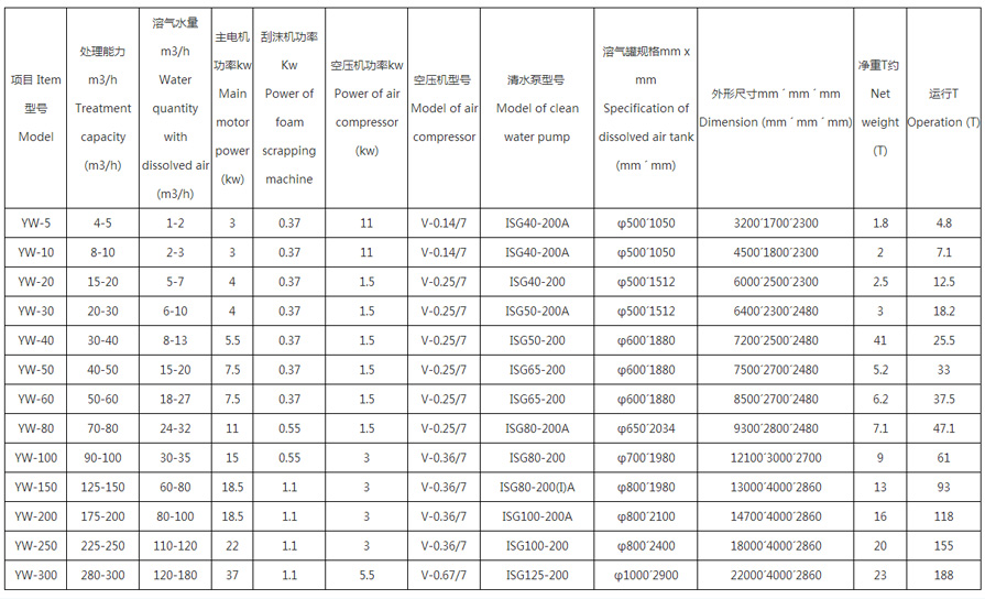氣浮設(shè)備處理能力可分為:5、10、20、30、40、50、60、80、100、150、200、250、300mVh等規(guī)格,也可按用戶要求設(shè)計(jì)