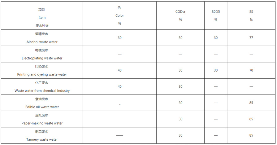 (因被處理廢水水質(zhì)差異很大,以上數(shù)據(jù)僅供參考)