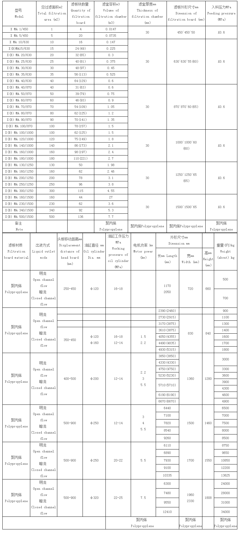1、按濾板外型尺寸分為:450、630、870、1000、1250、1500,也可根據(jù)用戶要求定做。